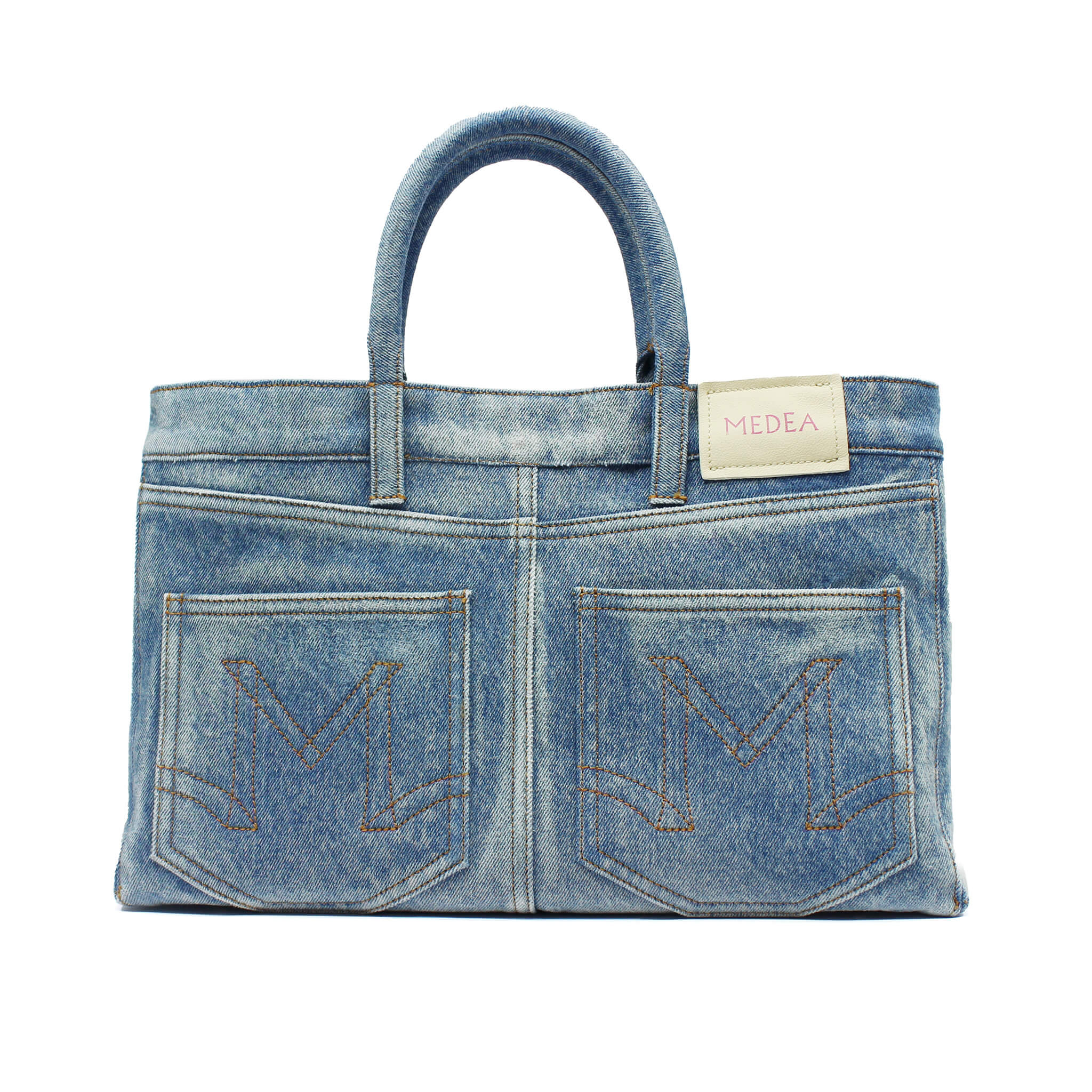 Blue denim bag with lasered faded effect