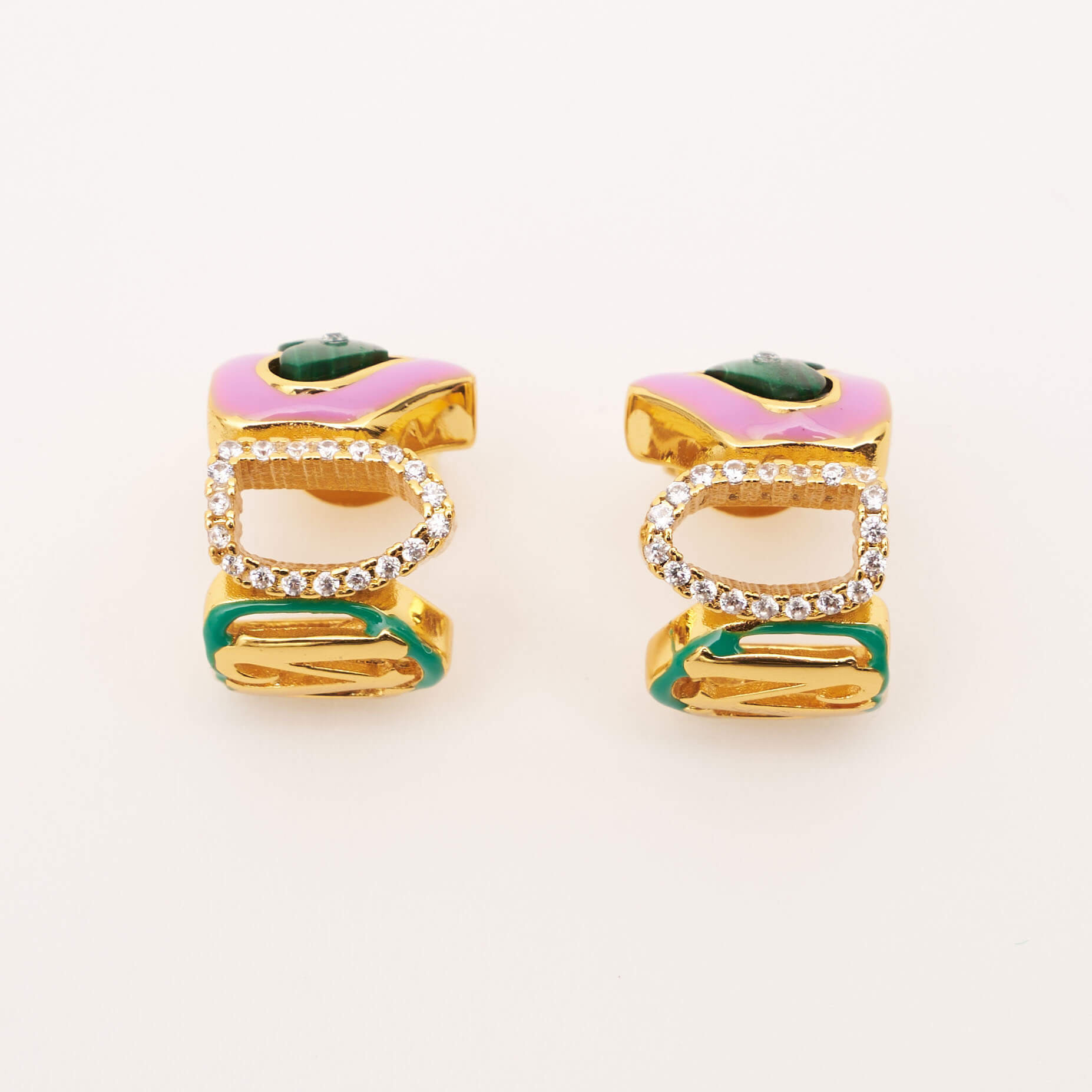 Materials : Enamel, Brass, Crystal ( Cubic Zirconia ), Malachite.