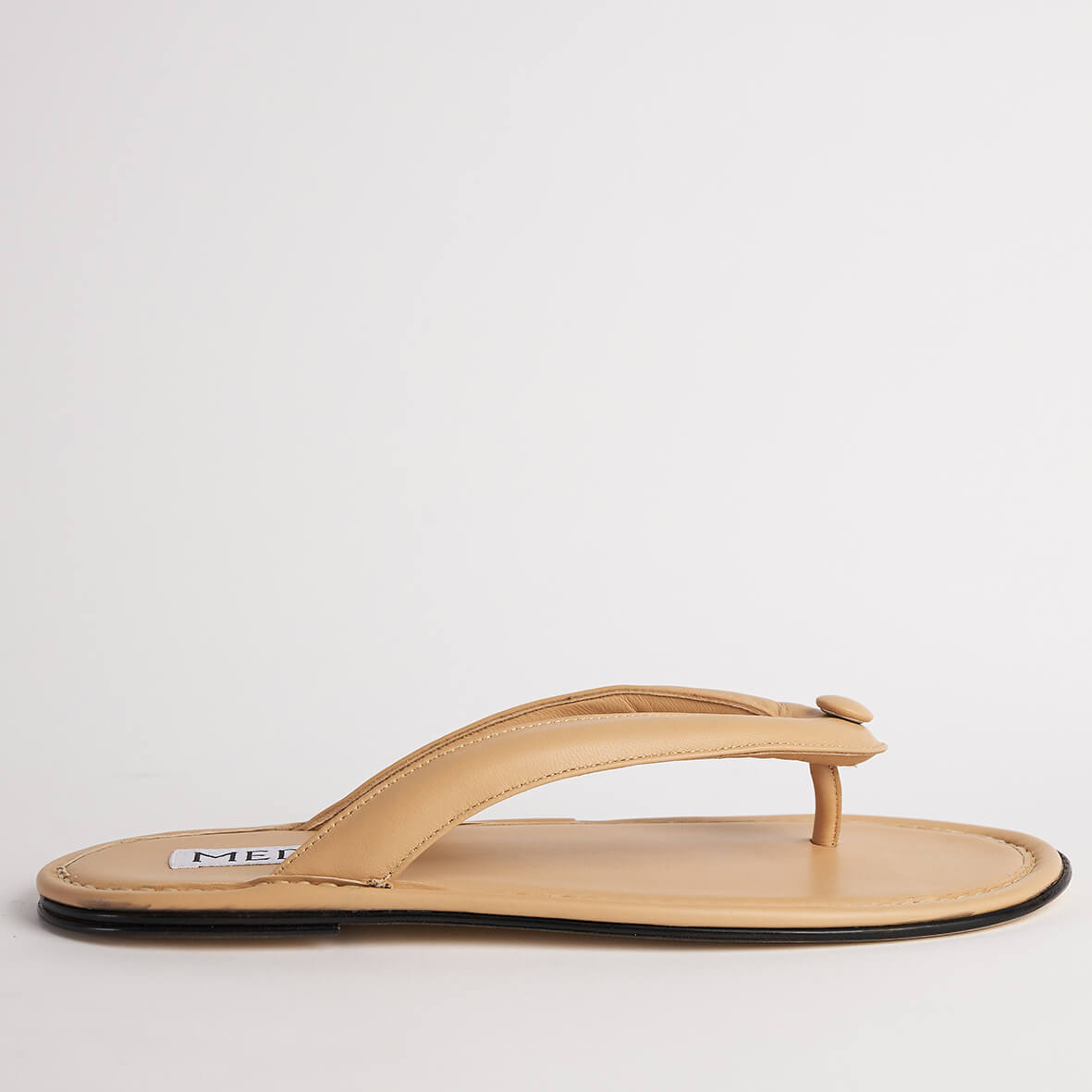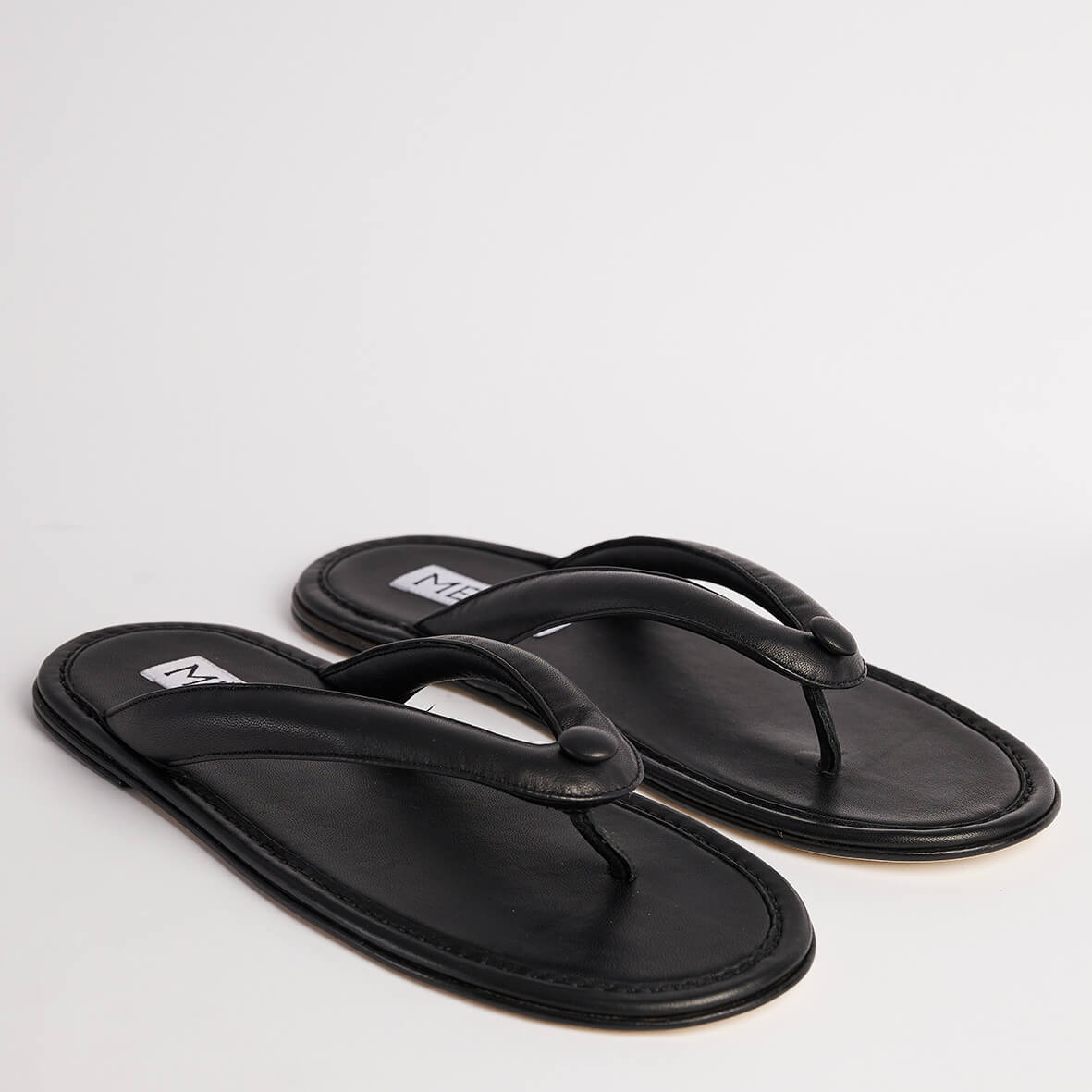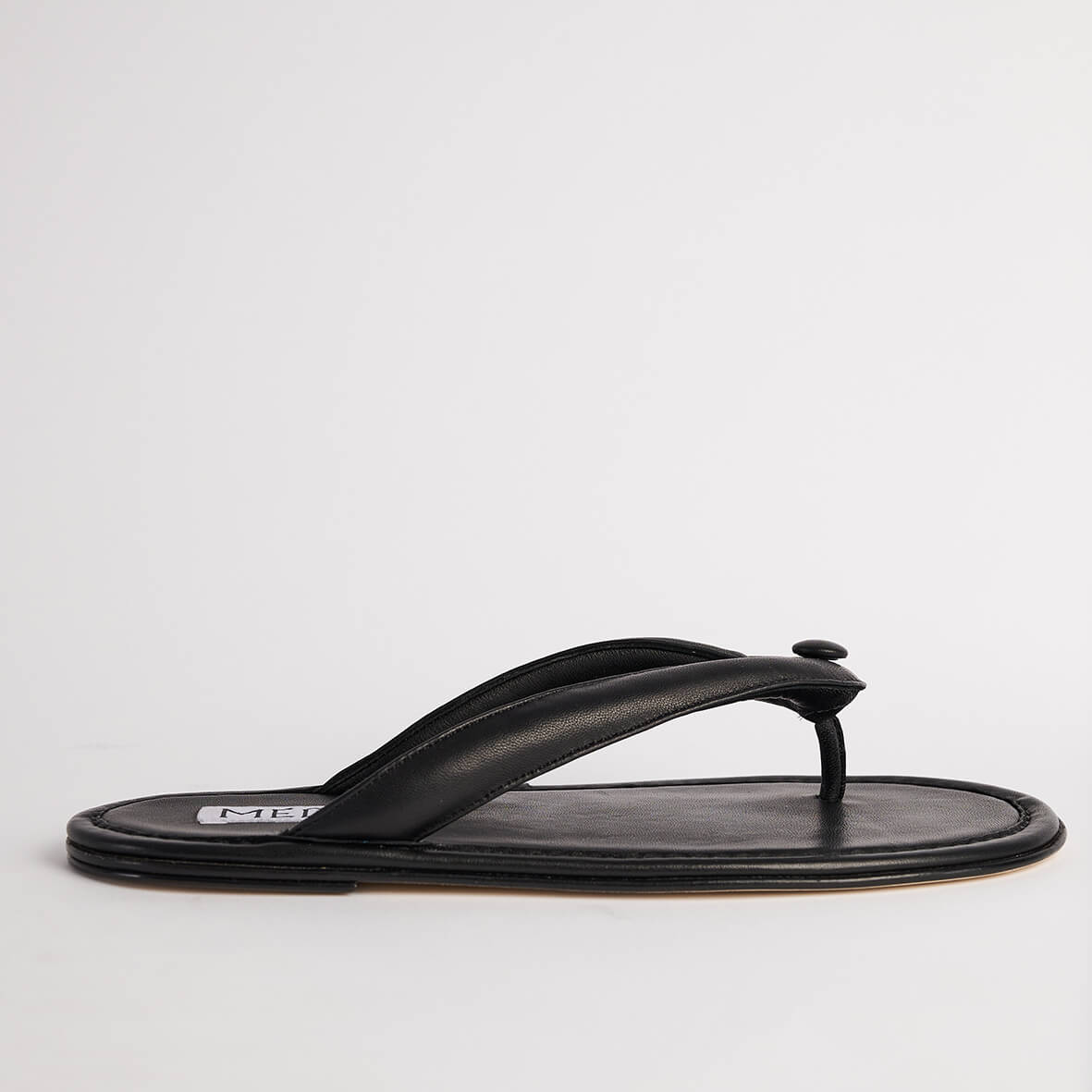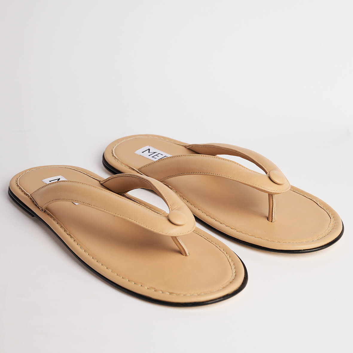 Flip flop sandal in calfskin leather with stitched leather detailing.
